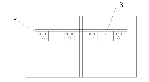 其中1、儀器臺體;2、容納腔體;3、容納腔體內(nèi)部;4、檢修門;5、通風(fēng)孔;6、插座;7、引線孔;8、導(dǎo)線槽;